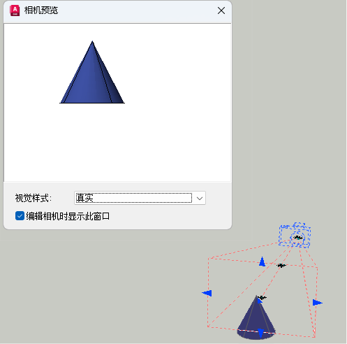选择相机时,将打开“相机预览”对话框以显示相机视图。