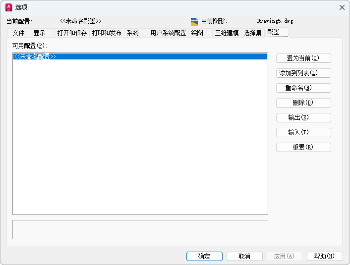 显示“更改配置”对话框,更改选定配置的名称和说明。要重命名一个配置但又希望保留其当前设置时,请使用“重命名”。