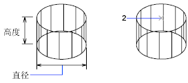 在图例中,使用圆心 (1)、半径上的一点 (2) 和表示高度的一点 (3) 创建了圆柱体。圆柱体的底面始终位于与工作平面平行的平面上。可以通过 FACETRES 系统变量控制着色或隐藏视觉样式的三维曲线式实体(例如圆柱体)的平滑度。