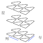 在行(X 轴)、列(Y 轴)和层(Z 轴)矩形阵列中复制对象。一个阵列必须具有至少两个行、列或层。