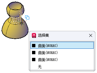 如果子对象选择过滤器处于打开状态,则不需要按住 Ctrl 键来选择三维模型的面、边或顶点。但是,需要关闭过滤器以选择整个对象。当前子对象过滤器设置存储在 SUBOBJSELECTIONMODE 系统变量中。