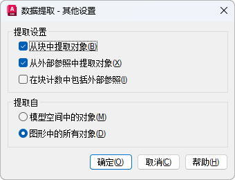 包括图形中模型空间和图纸空间中的所有对象,并包括图形信息。默认设置为打开。