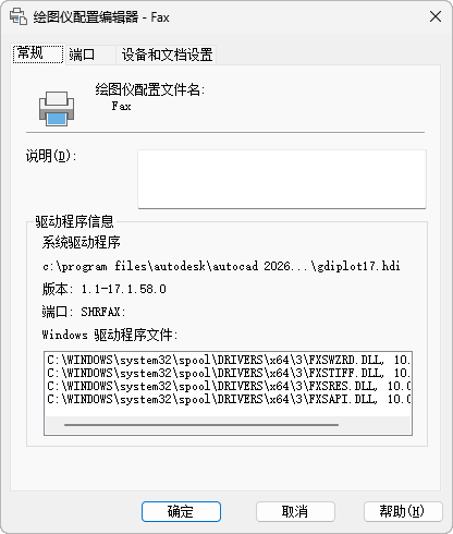 • 绘图仪驱动程序类型(系统或非系统)、名称、型号和位置