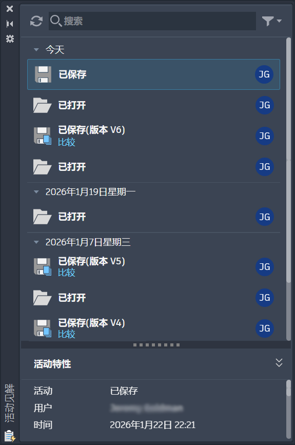 打开后,可以按日期、用户、活动或文件名