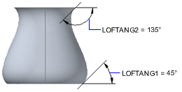 指定端点横截面拔模斜度。(LOFTANG2 系统变量)