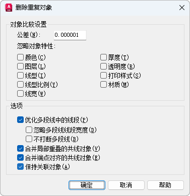删除重复的几何图形以及重叠的直线、圆弧和多段线。此外,合并局部重叠或连续的对象。