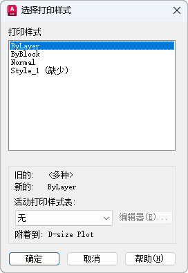 显示可用的打印样式,包括默认打印样式“普通”。打印样式是一个用于打印的特性设置集合。