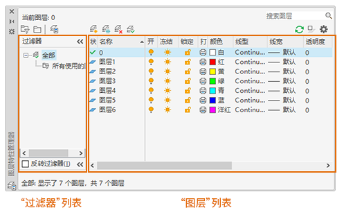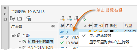 显示图形中的图层过滤器列表。单击