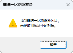 在提取过程中将显示一个对话框,表明发现未按统一比例缩放的块,并且这些块中的对象不包括在提取中。