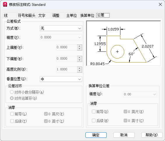 指定标注文字中公差的显示及格式。