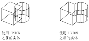 将两个或多个三维实体、曲面或二维面域合并为一个复合三维实体、曲面或面域。