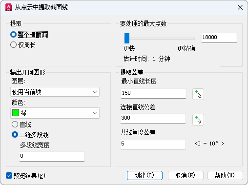 沿点云与截面平面的预计交点创建线或二维多段线。