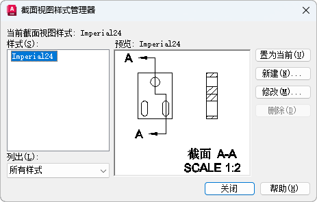 将“样式”列表中选定的截面视图样式设定为当前样式。使用此截面视图样式创建所有新截面视图。