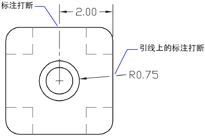 使用折断标注可以使尺寸线、尺寸界线或引线不显示,似乎它们是设计的一部分。