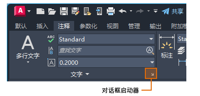 一些功能区面板提供了对与该面板相关的对话框的访问。要显示相关的对话框,请单击面板右下角处由箭头图标
