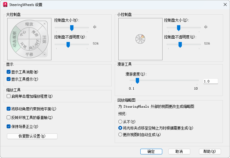 指定视图更改发生在 SteeringWheels 之外时不生成预览缩略图。