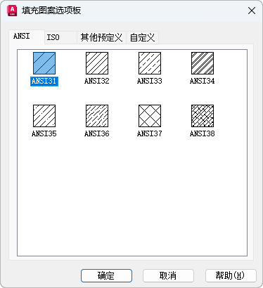 HATCH(命令) 查找:出现提示时指定设置选项 > “图案:”