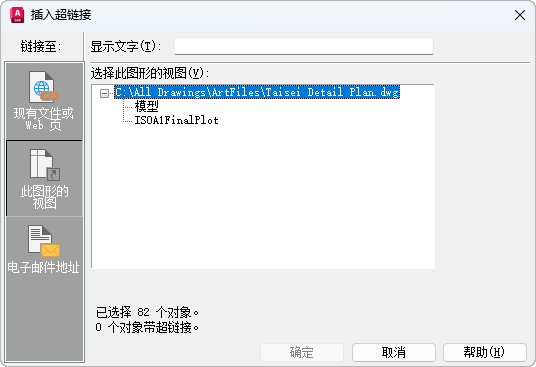 显示当前图形中命名视图的可扩展树状图,从中可选择一个进行链接。