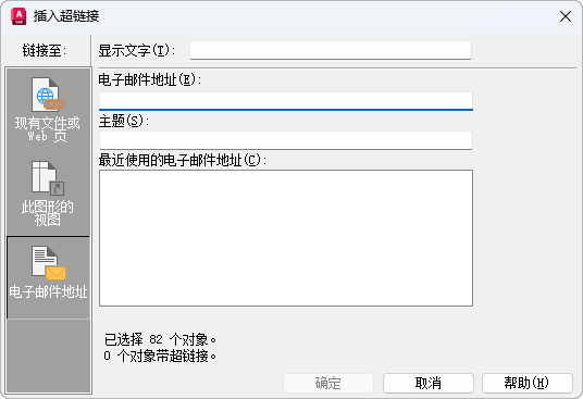列出最近使用过的电子邮件地址,可从中选择一个用于超链接。
