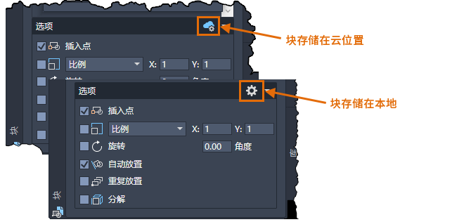 - 控制块在插入时是否自动分解为其部件对象。作为块将在插入时遭分解的指示,将自动阻止光标处块的预览。