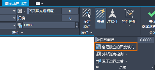 注: 在“图案填充”命令处于活动状态后,即会显示“图案填充创建”功能区选项卡。
