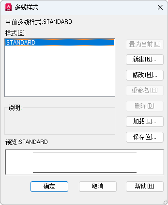 显示当前多线样式的名称,该样式将在后续创建的多线中用到。