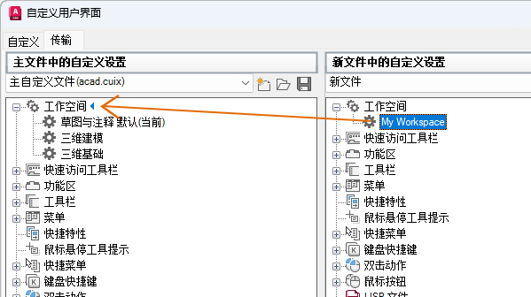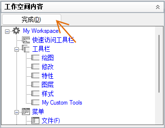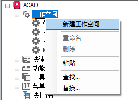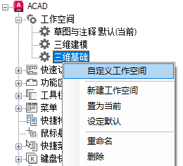 将工作空间置为当前、创建或修改工作空间,并将工作空间从局部 CUIx 文件输入主 CUIx 文件。