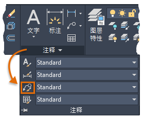 - 在功能区上,单击“注释”选项卡,然后找到“引线”面板。该面板确认“图号标注”是当前多重引线样式。
