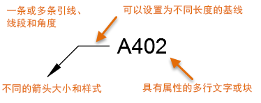注: MLEADER 命令提供的选项可用于更改命令的输入顺序 - 不论是要先指定箭头、基线,还是要先指定内容。