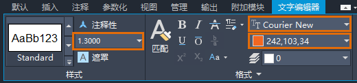 - 在“文字编辑器”功能区上下文选项卡上,执行以下操作以更改多行文字中字符的格式设置: