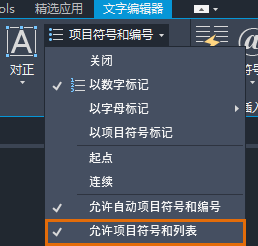 - “文字编辑器”功能区上下文选项卡的“段落”面板上,单击“项目符号和编号”。选择“以数字标记”。