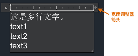 提示: 双击标尺上的宽度调整器箭头,以自动将边框限制在多行文字对象的限制范围内。该方法有助于更好地控制多行文字的自动换行。