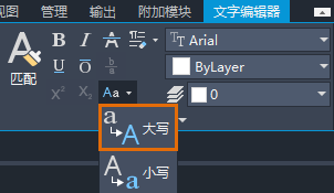 - 在“文字编辑器”功能区上下文选项卡的“格式”面板上,单击“更改大小写”。选择“大写”。
