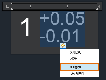- 要创建公差堆叠,请在插入符 (^) 前后输入数字字符。例如,键入“1 +0.05^-0.01”,然后按空格键。