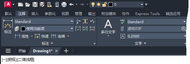 功能区是 AutoCAD 应用程序窗口的主要区域,通过它可以访问用于在图形中创建和修改对象的工具。可以将每个功能区选项卡视为相关工具的逻辑分组。功能区选项卡上的面板有助于进一步优化每个逻辑分组。