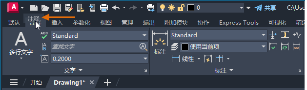 在本练习中,您将重新定位“注释”选项卡和“标注”面板。