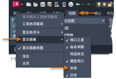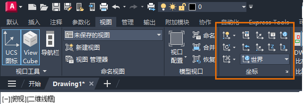 在本练习中,您将隐藏“参数化”功能区选项卡,并在“视图”选项卡上显示“坐标”面板。