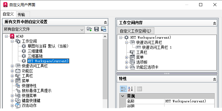 有关如何使用 CUI 编辑器自定义工作空间的详细信息,请参见关于工作空间自定义。