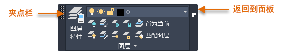 将指针光标移动到“图层”面板上,以使用夹点栏将其重新定位,或单击“返回到面板”将面板返回到它所来自的功能区选项卡。