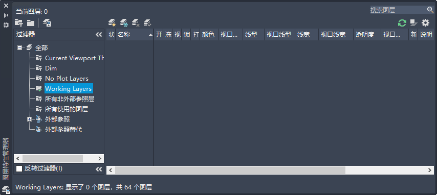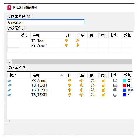 图层过滤器在“图层特性管理器”的“过滤器”窗格中进行管理。在满足特定条件时某些图层过滤器由程序自动创建,例如