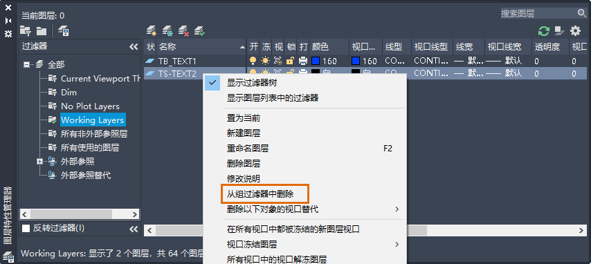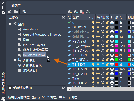 - 在“图层特性管理器”的“过滤器”窗格中,选择要设置为当前的图层过滤器。