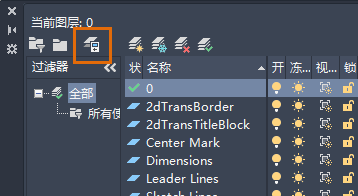 - 使用 LAYER 命令打开“图层特性管理器”。 查找