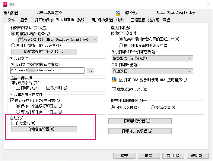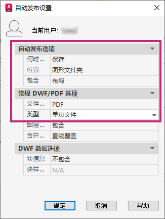 注: 自动发布的 PDF、DWF 或 DWFx 文件将自动覆盖同名的现有版本。