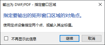- 在“输出为 DWF/PDF - 指定窗口区域”消息框中,单击“继续”以选择区域。