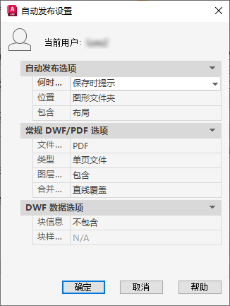 如果要控制是创建 PDF 还是创建 DWF,可以将“发布时间”设置设为“保存时提示”或“关闭时提示”。