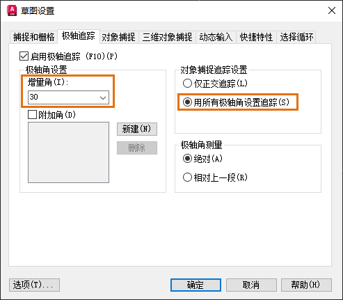 以下是一些与对象捕捉追踪相关的常用命令和系统变量。