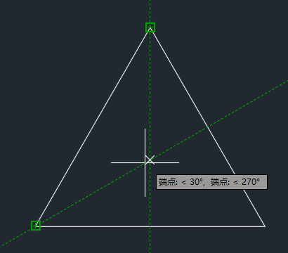 默认情况下,对象捕捉追踪仅以正交方式追踪。但是,可以更改“对象捕捉追踪”设置以使用所有极轴角设置。这一次,假定您要使用对象捕捉追踪以在此三角形的中心处绘制一个圆。