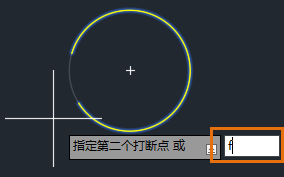 3. 当系统提示输入第二个打断点时,请输入“F”以使用“第一点”选项并替代原始的第一个点。