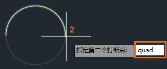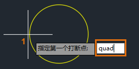 5. 使用“QUADrant”对象捕捉,并将第一个打断点指定为圆的象限。