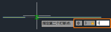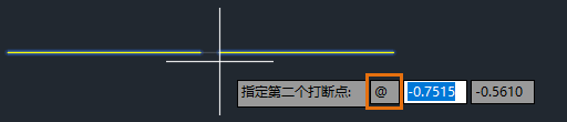 “@”指示“BREAK”命令使用为第二个点指定的上一个点。在这种情况下,直线的中点用于第一个点和第二个点,从而产生两条相等的线段,它们之间没有间隙。